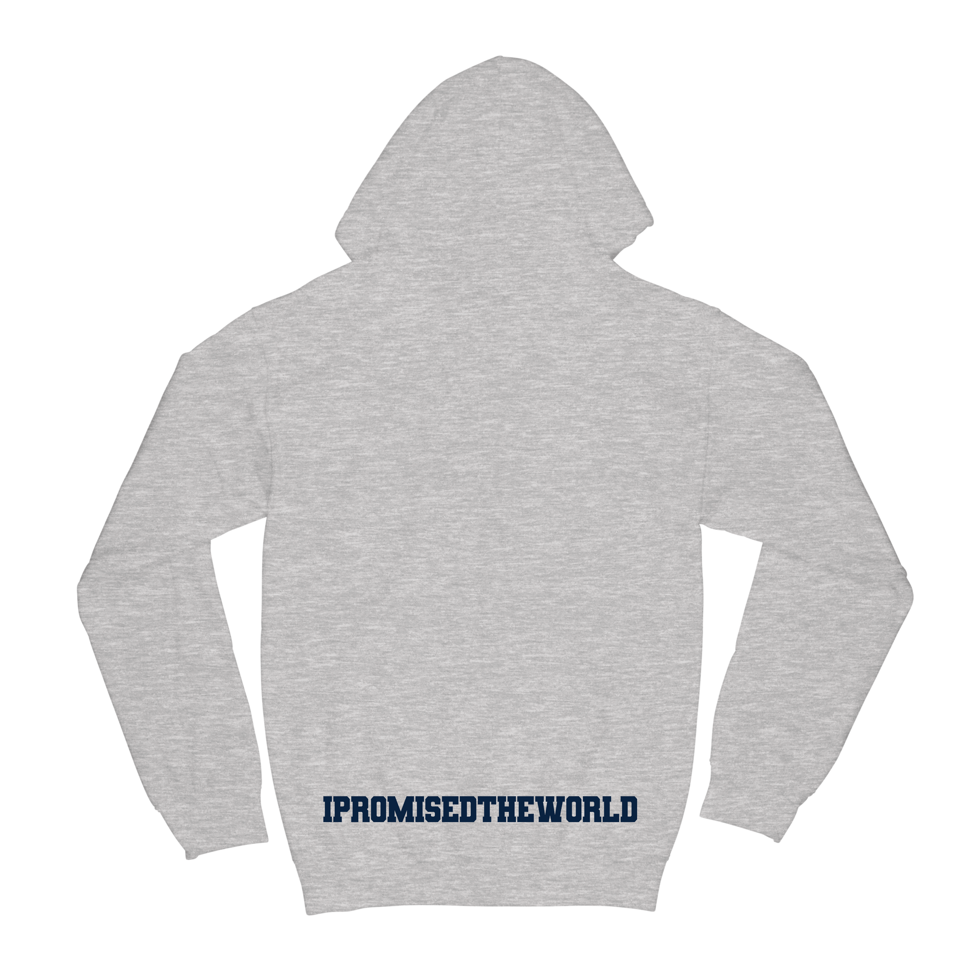 I Promised The World - IPTW design on sport grey 50/50 cotton/polyester zip up hoodie. Classic Fit.